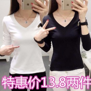 纯色秋衣打底衫女长袖T恤女春秋紧身上衣修身内搭款韩...