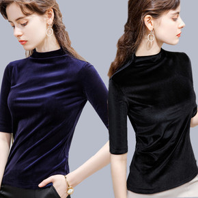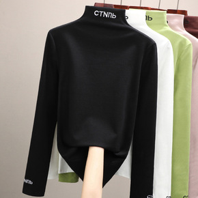 2021新双面德绒保暖t恤女半高领上衣女韩版显瘦女...