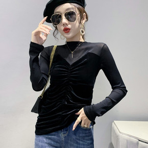 德绒打底衫女秋冬内搭洋气半高领黑色加绒长袖t恤上衣...