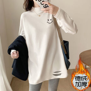 大码德绒打底衫女半高领洋气长袖胖mm加绒烫钻t恤上...