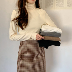 现货实拍加厚半高领德绒打底衫女修身显瘦上衣长袖加绒...