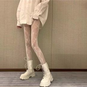 花藤蕾丝网袜日系性感网眼打底连体袜白色黑色JK防勾...