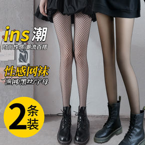 网红jk字母黑丝袜渔网袜ins潮春夏季薄款性感丝袜...