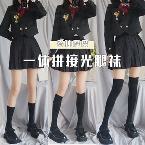 拼接双层光腿神器加绒加厚黑丝袜jk黑白假小腿假高筒...