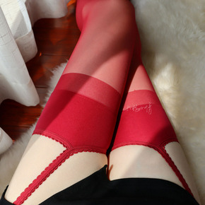 欧美流行开裆蕾丝透明吊带网袜黑丝性感渔网丝袜防滑连...