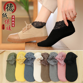 德绒袜子蕾丝花边女月子袜秋冬保暖地板袜纯色防滑硅胶...