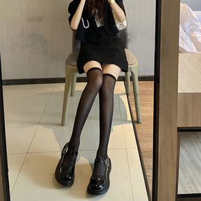 花边白色小腿网袜袜女夏薄jk袜透明长筒袜黑色连裤袜...