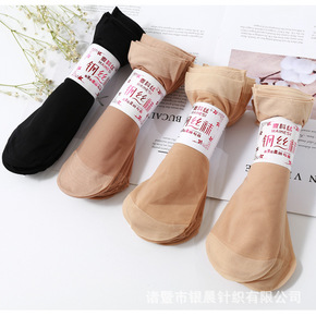 现货棉底丝袜女短春秋薄款不易勾丝耐穿面膜钢丝黑肉色...