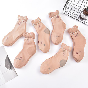 夏季黑肉色中筒水晶浪莎短袜子5双装防勾丝袜女薄款耐...