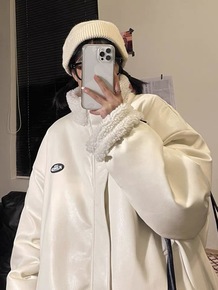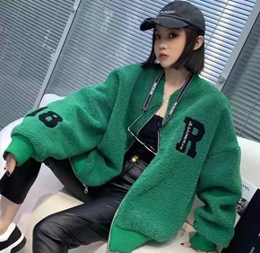 双面穿羊羔毛加厚外套女2021冬新款百搭宽松棒球服...