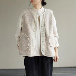 8712#冬宽松牛仔马甲女两面穿仿羊羔毛中长款加厚...