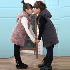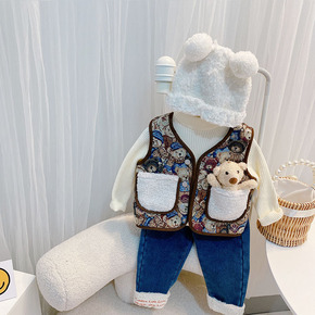 女童两面穿羊羔绒马甲21秋冬童装女宝宝卡通小熊加厚...