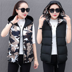 双面穿运动棉马甲秋冬保暖国服情侣外套连帽羽绒棉衣坎...