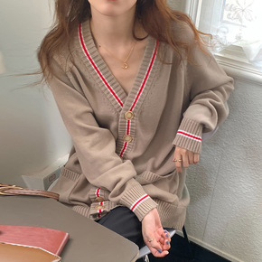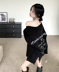 不规则开叉露肩慵懒风毛衣外套女秋季2021新款针织...