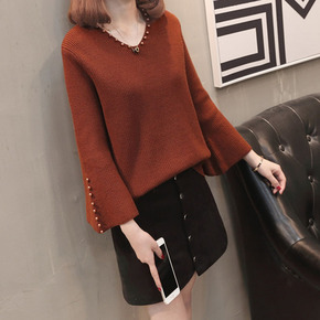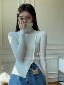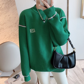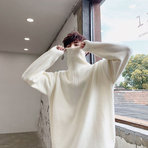 套头半高领毛衣2019新款秋冬女装百搭上衣下摆开叉...