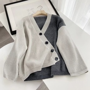 货号:Q88185-慵懒风拼色不规则休闲毛衣外套-$ZO1-S213-210912 货源类别...
