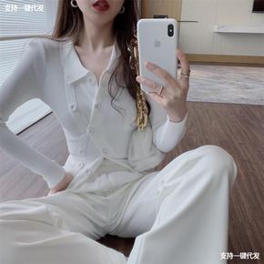 polo领双排扣修身不规则针织衫毛衣女设计感小众坑...