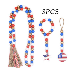 美国独立日麻绳流苏串珠 创意彩色木珠串 国旗五角星...