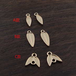 铸铜仿古点翠胎底小叶子挂件 保色金燕尾叶子双吊流苏...