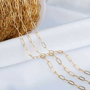 项链流苏基础百搭铜镀真金18K色椭圆长链条欧美风D...