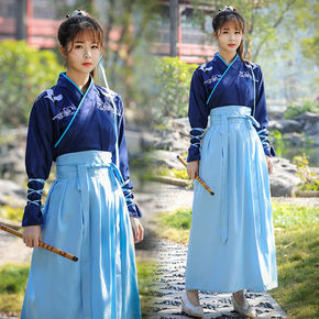 新款日常汉服女中国风交领齐腰秋冬款年会演出武侠学生...