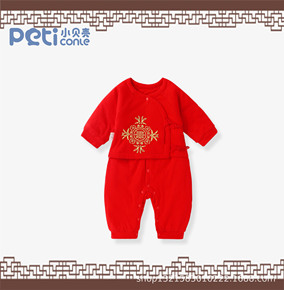 宝宝连体衣加厚冬大红色外出服爬服中国风新生婴儿衣服...