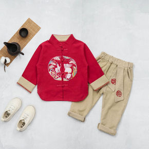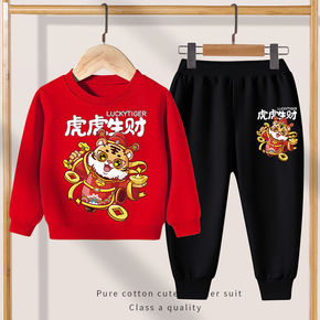虎年国潮童装男童卫衣套装2022春款新款儿童加绒上...