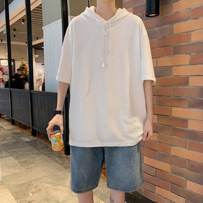 连帽短袖T恤男夏季ins潮牌宽松大码国潮上衣服潮流...