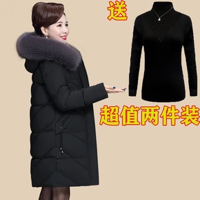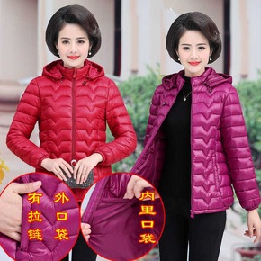 中年妈妈轻薄羽绒棉服活帽40-50岁冬季外套中长款...