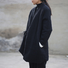 冬季棉服文艺宽松复古新中式风棉袄加厚V领纯长款女V...
