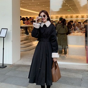 棉衣女中长款大花毛领修身显瘦棉袄2021时尚百搭加...