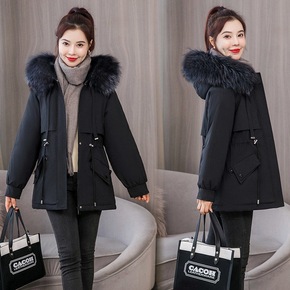 加绒加厚可拆卸派克服棉服女冬装2021年新款棉衣韩...