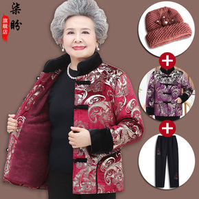 中老年人女冬装棉服奶奶装加绒加厚棉袄老人妈妈外套唐...