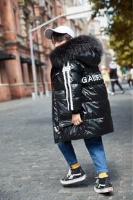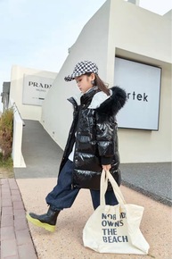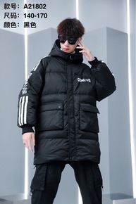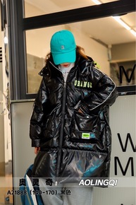 2021连帽字母冬季女大童拉链衫羽绒服现货白鸭绒黑...