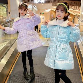 韩版女童棉服2021新款秋冬装中大童装加厚儿童中长...