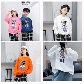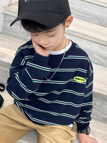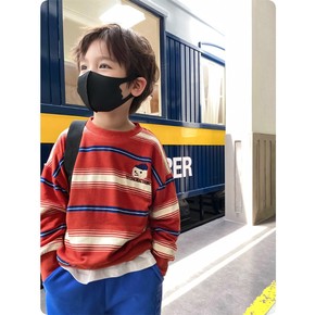 少年偶像春款儿童卫衣 彩条刺绣小熊韩版男女童中大童...