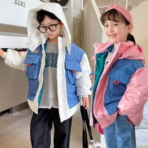 2022新款儿童男童女童宝宝牛仔拼色款羽绒服防寒保...