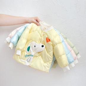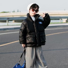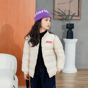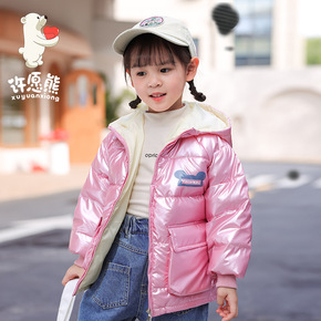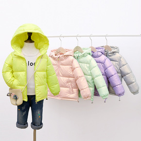 反季儿童羽绒服女童短款洋气面包服男童亮面免洗冬装外...