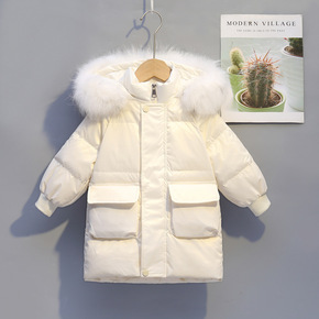 儿童羽绒服男中大童2021新款韩版女孩中长款加厚白...
