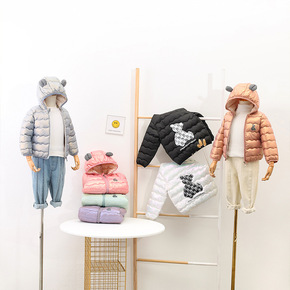 2022年新款免洗儿童羽绒服男童女童保暖小熊连帽外...