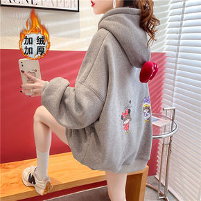 冬季连帽加绒加厚初中生卫衣女2021年新款韩版宽松...