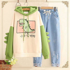 连帽卫衣男套装春秋宽松版型青少年初中学生休闲衣服男...