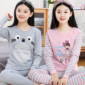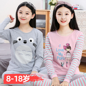 秋衣秋裤女士全棉套装少女保暖内衣初中高中学生大童女...