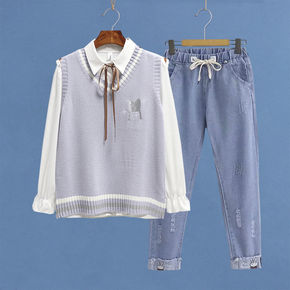 冬季少女保暖内衣套装加绒加厚秋纯棉毛衫圆领可爱中学...