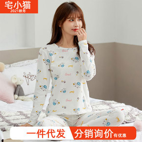 宅小猫莱卡棉秋衣秋裤套装少女初中学生内穿保暖内衣打...