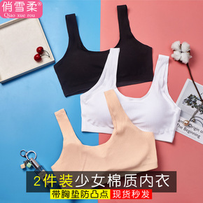 少女士纯棉运动小背心式无钢圈发育期文胸高初中学生内...