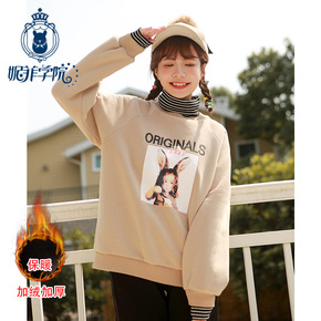 加绒加厚卫衣女秋冬装2021新款初中学生韩版休闲宽...