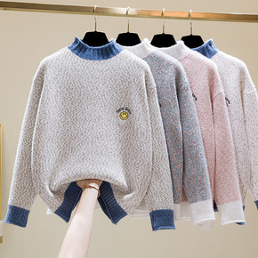 初中高中学生冬装高中学生冬季桃花流苏高领假两件加绒...