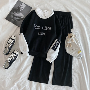 高中学生卫衣套装少女大童加绒加厚假两件学院风冬装初...