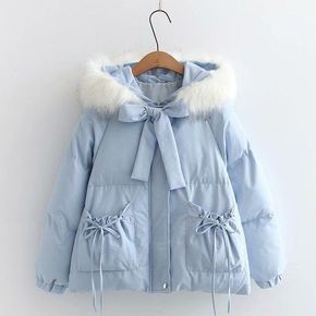 大毛领棉衣女21冬季森系女中学生可爱系带加厚棉服外...